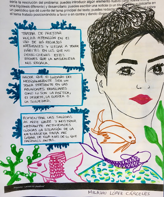Los alumnos de 3º ESO B lo han trabajado junto a su profesor de Lengua castellana y Literatura, Pedro López, y han reinterpretado el texto aportando acciones concretas con las que mejorar en nuestra conducta con respecto a los plásticos. Lo han hecho con trabajos de tanta calidad como los que colgamos a continuación: